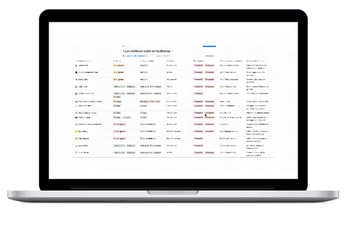 Je t'ai enregistré une vidéo dans laquelle je détaille mes 7 outils préférés. Tu auras accès à ces outils dans une base de données pour les retrouver écrit et les utiliser dans la préparation de tes sessions collective.